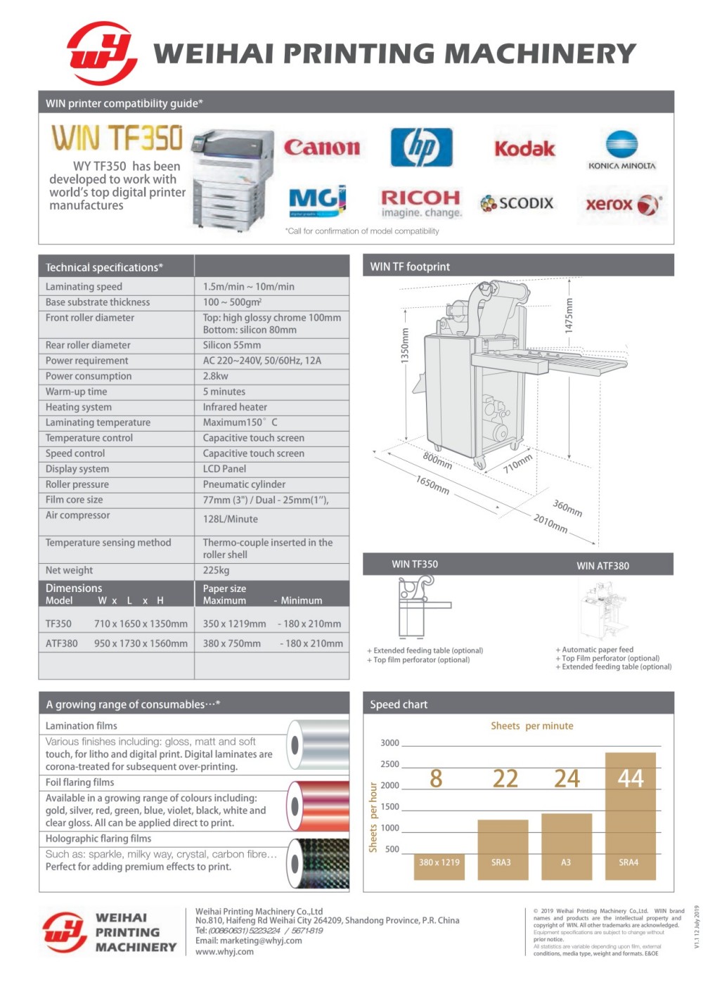 Den manuella laminerings- och folieringsmaskinen är en manuell pappersmatande laminerings- och metallfolieringsutrustning designad och tillverkad av Weihai Printing Machinery Co., Ltd. Med en kompakt design sparar den verkstadsutrymme samtidigt som den integrerar både laminerings- och metallfolieringsfunktioner, vilket är lämpligt för företag som kräver in-house dekorativ bearbetning. Den kan omvandla vanligt tryckt material till högkvalitativa utsökta färdiga produkter, och det är fullt kompatibelt med både digitala on-demand-applikationer och traditionella litografiska offsettryck. För att säkerställa optimala bearbetningsresultat är maskinen utrustad med en elektronisk styrenhet som justerar valstryck och uppvärmningstemperatur under drift enligt nyckelvariabler som körhastighet, papperstjocklek och designmönster. Som en högpresterande manuell matad varmstansnings- och lamineringsutrustning har den verifierats att den avsevärt ökar mervärdet av kundernas produkter. Kunder kan välja från ett brett utbud av lamineringsfilmer och metallfolier för att möta olika dekorativa krav. Dessutom är den försedd med ett utökat pappersmatningsbord för att rymma banderoller och extra långa trycksaker.